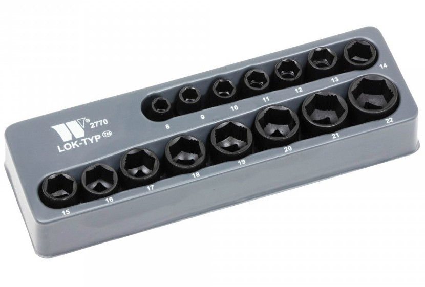 Lok-Typ típus: előnye, hogy a szabványos hatlapú csavaroknál is használhatjuk, de kialakításuknak köszönhetően az elhasználódott csavaroknál is használható.