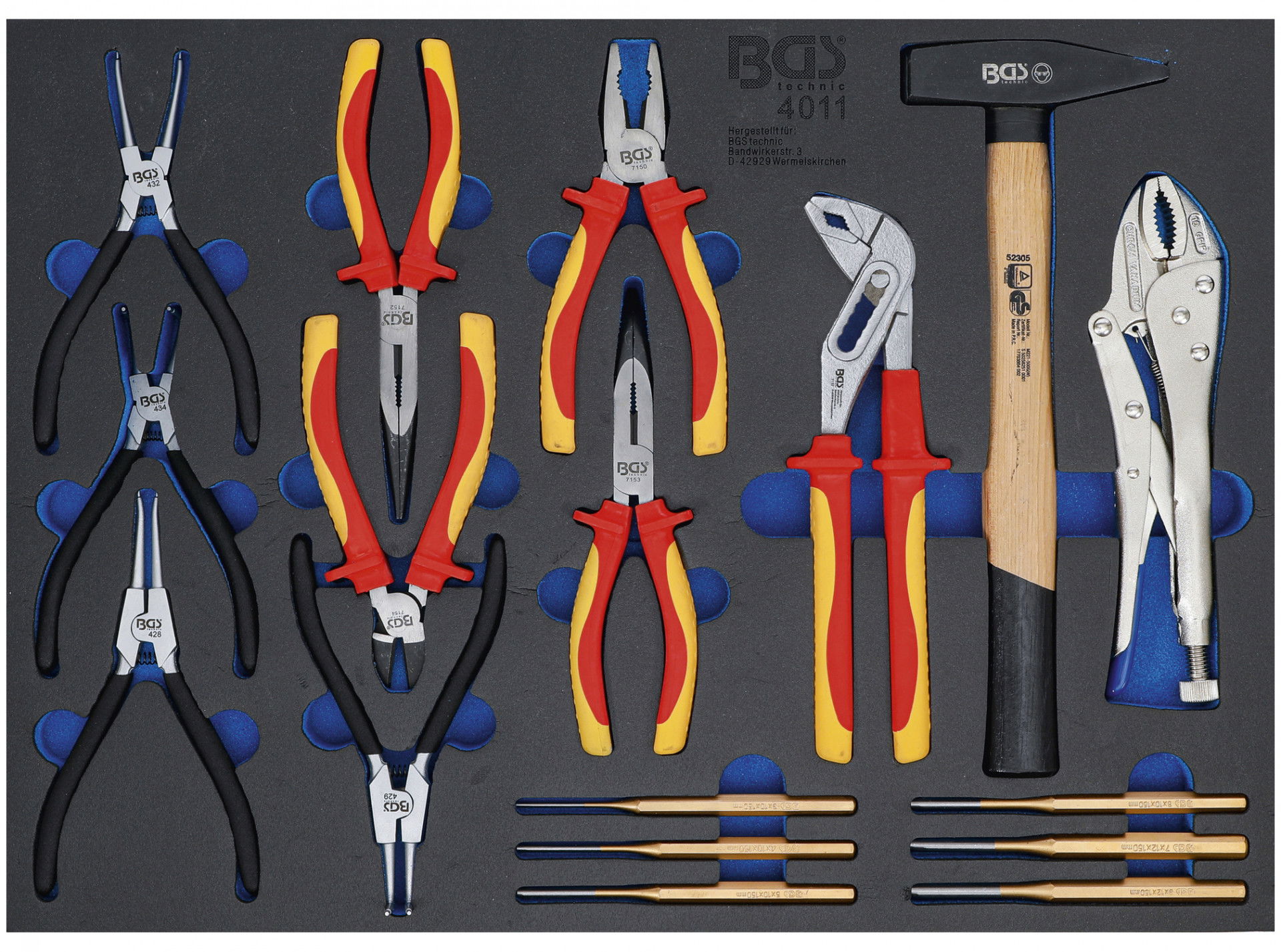 BGS Technic 9-4011 VDE 1000 V szigetelt fogó és csapkiütő szerszám készlet, 17 részes