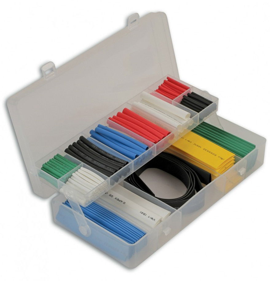 171 db-os válogatott zsugorcső készlet méretre vágott kiszerelésben.
