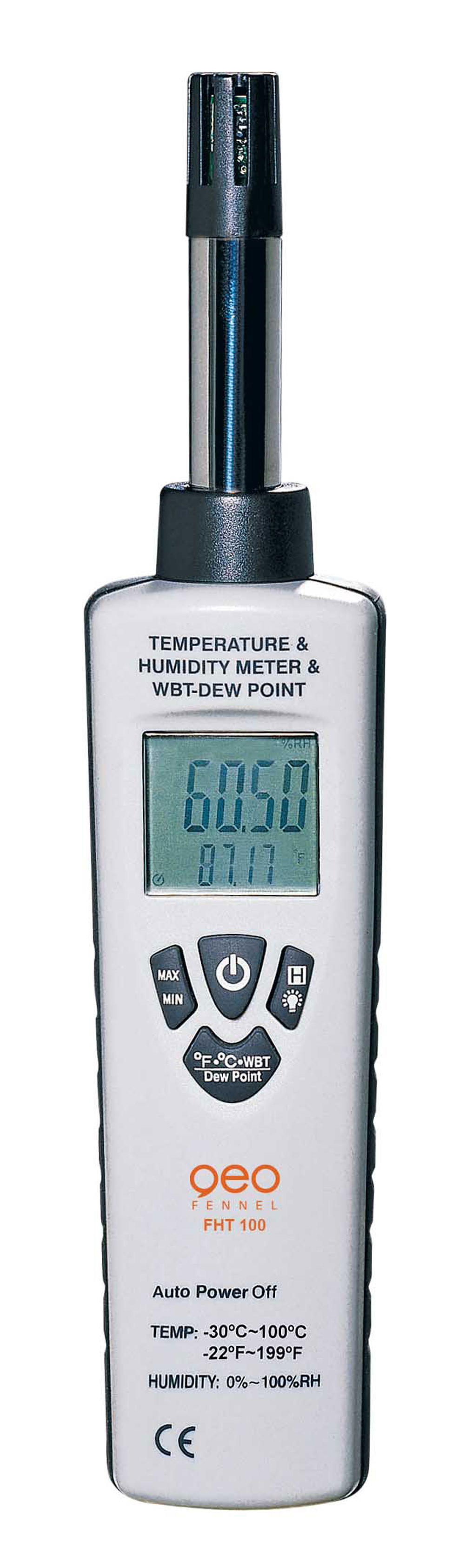 Az FHT 100 típusú digitális mérőműszer a légnedvesség-mérő, a léghőmérő, a nedves hőmérsékletmérő, valamint a harmatpont mérő funkcióit egyesíti. Laboratóriumi, ipari és mérnöki felhasználásra egyaránt alkalmas.