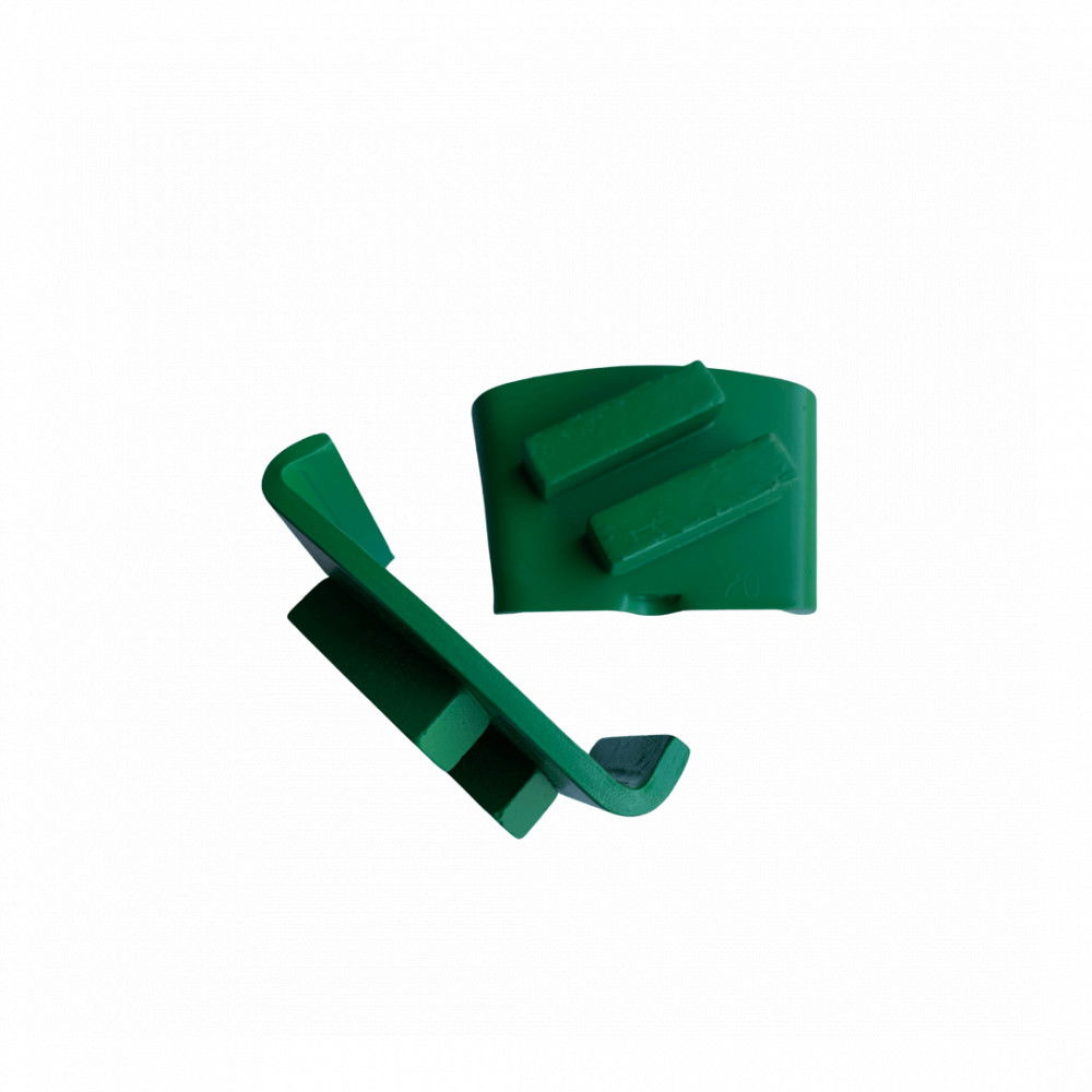 Felfogatás: csavaros Szegmens hosszússág: 40mm Szegmens magasság: 10mm Szegmens szélesség: 10mm Felhasználási terület: padlócsiszológép. Rendelhető puha kötéssel kemény betonhoz, közepes kötéssel közepesen kemény betonhoz és kemény kötéssel lágy betonra. Gyémánt szemcseméret/grit 16/18-tól 120/140-ig rendelhető.